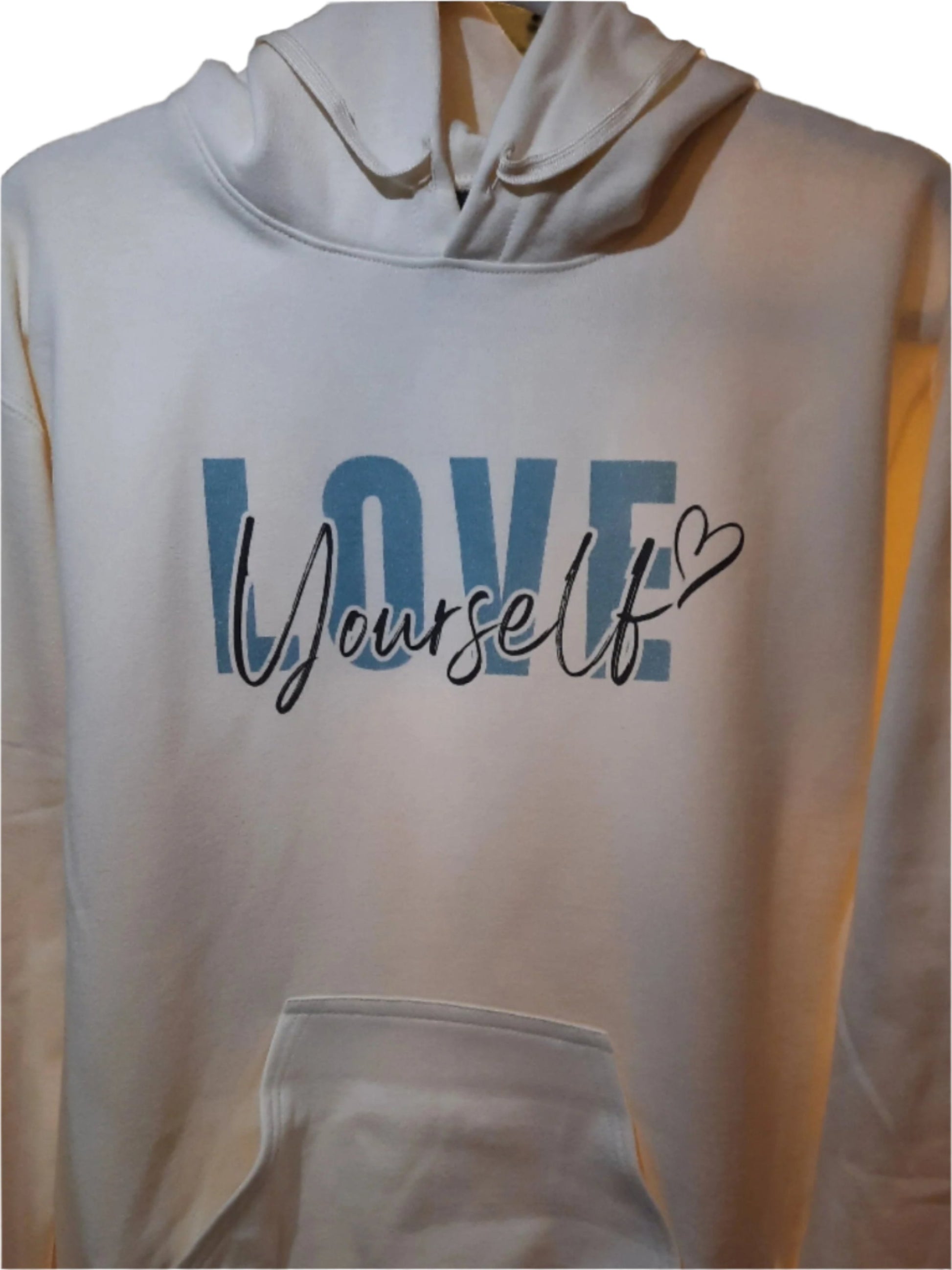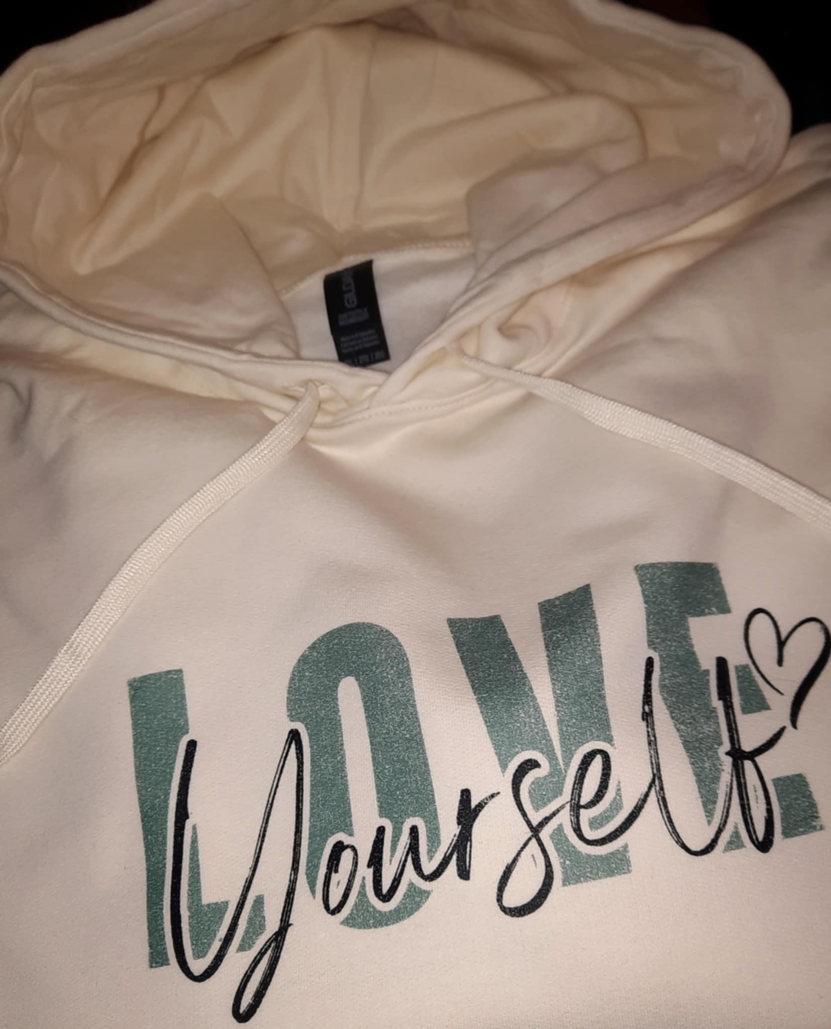 ABM's Love Yourself Hoodie! Available in White, Cement Grey or Offwhite.